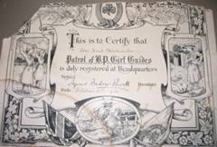 Barkwith's Registration Certificate signed by Agnes Baden Powell 21 st Oct 1912